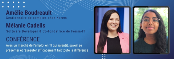Amélie Boudreault is an Account Manager at Korem, where she leverages her technology expertise as a former Full Stack developer. She is the co-founder of the non-profit Fémin-IT and has been a Google Women Techmakers ambassador since 2020, showing strong commitment to the Quebec tech community, especially for emerging talent. A graduate of Laval University in Software Engineering, she has distinguished herself in various leadership roles, promoting inclusion, innovation, and collaboration in the IT sector.